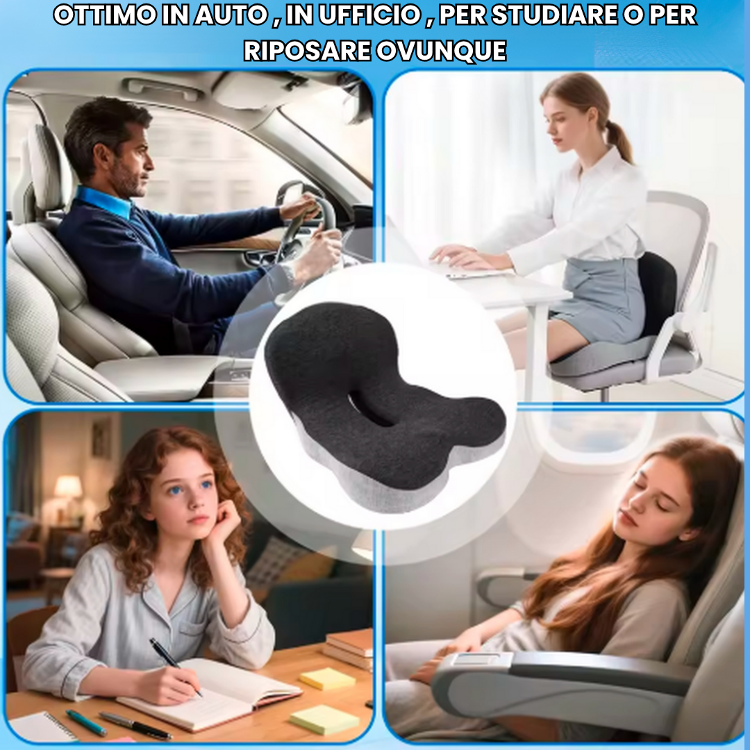 Sì! È stato progettato proprio per alleviare il dolore lombare, ridurre la pressione su colonna e coccige e offrire sollievo mirato a chi soffre di sciatalgia, ernie o dolori cronici.